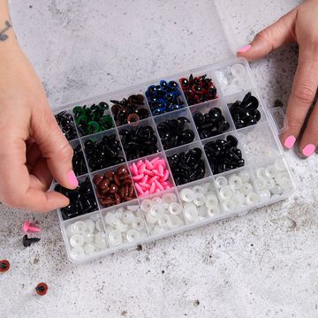 Sikkerhetsøyne , eske med 280 stykk øyne i . (560 deler)