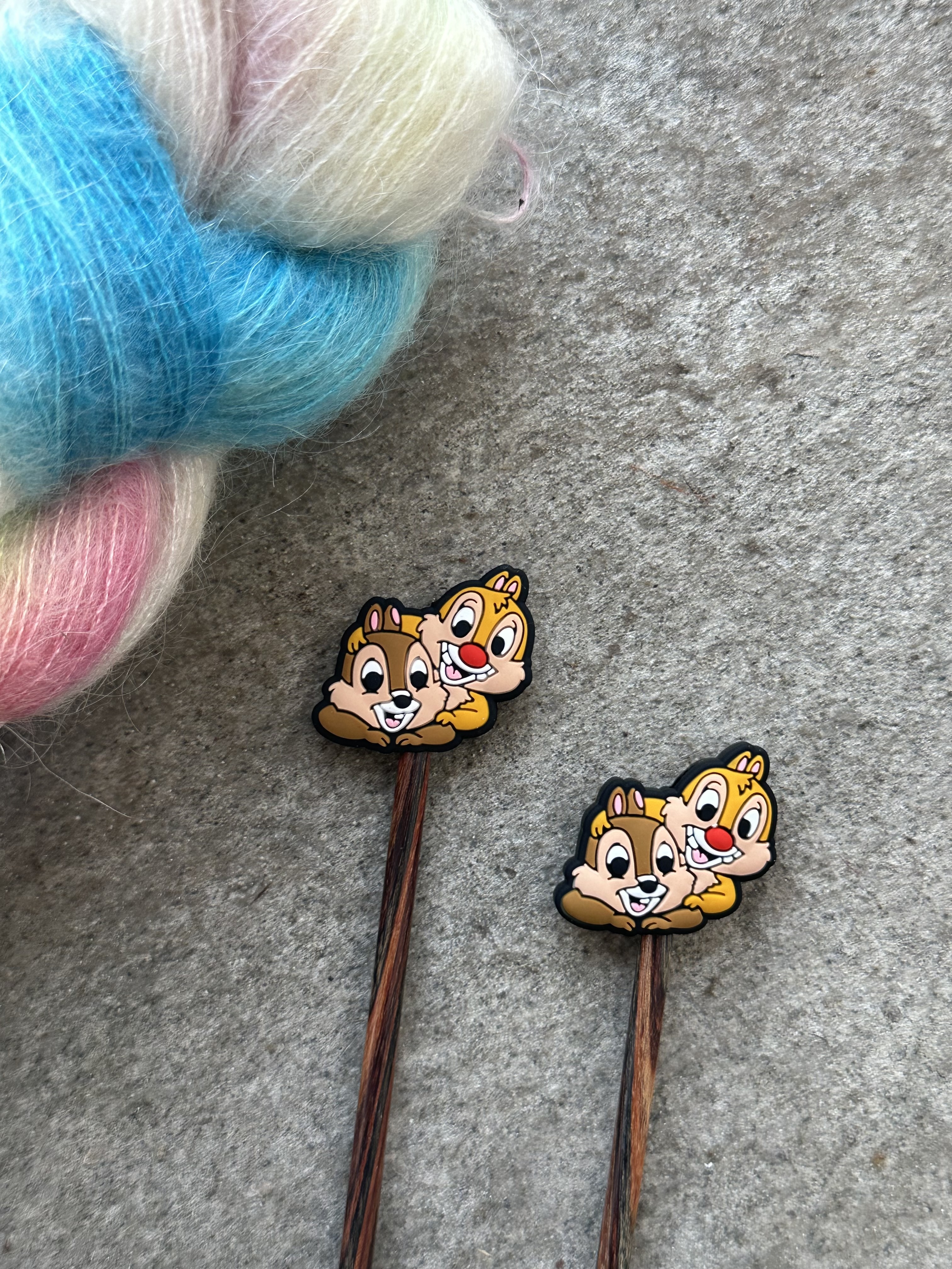Søte pinnestoppere til strikkepinnene, i silikon.