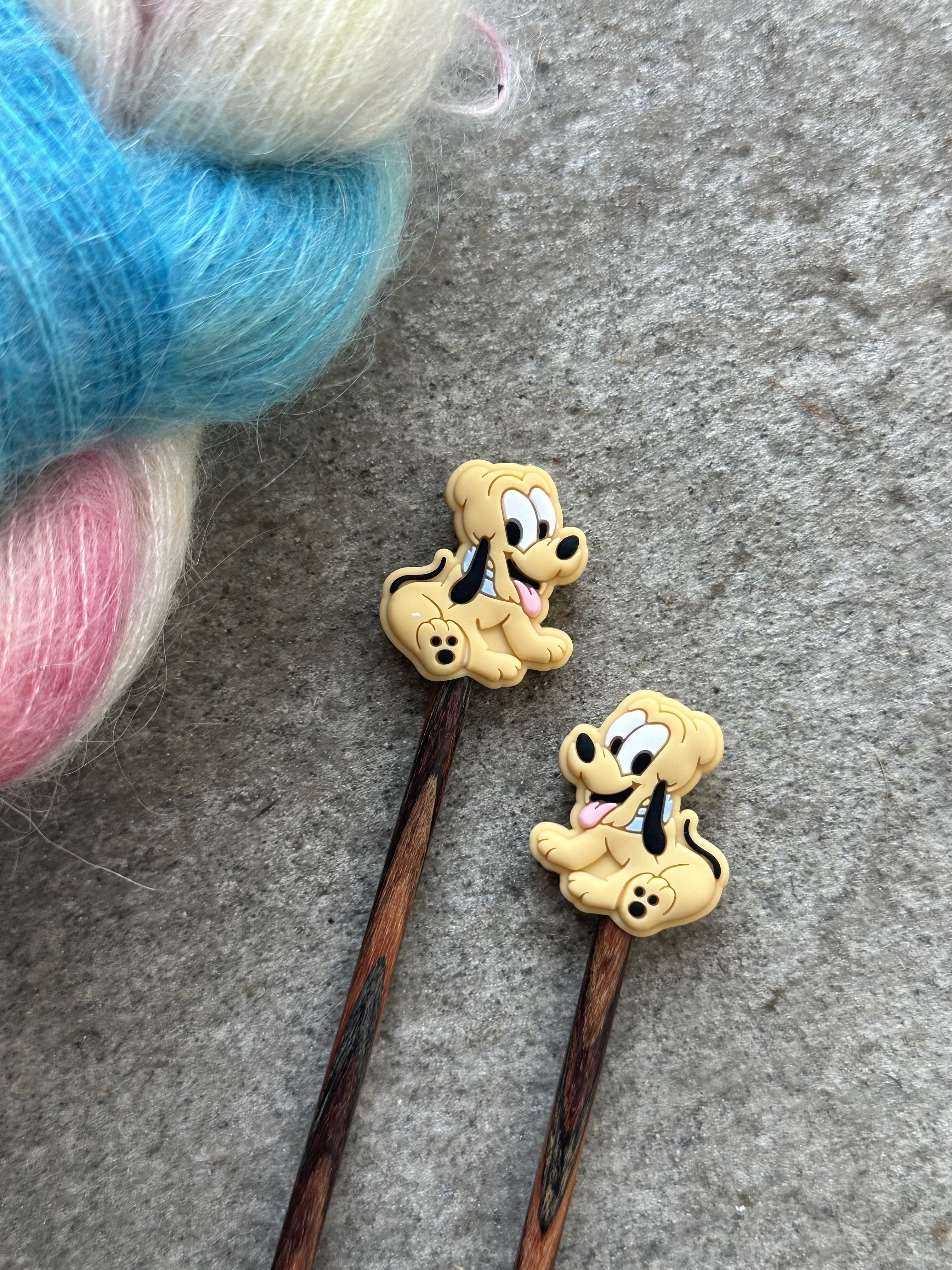 Søte pinnestoppere til strikkepinnene, i silikon.
