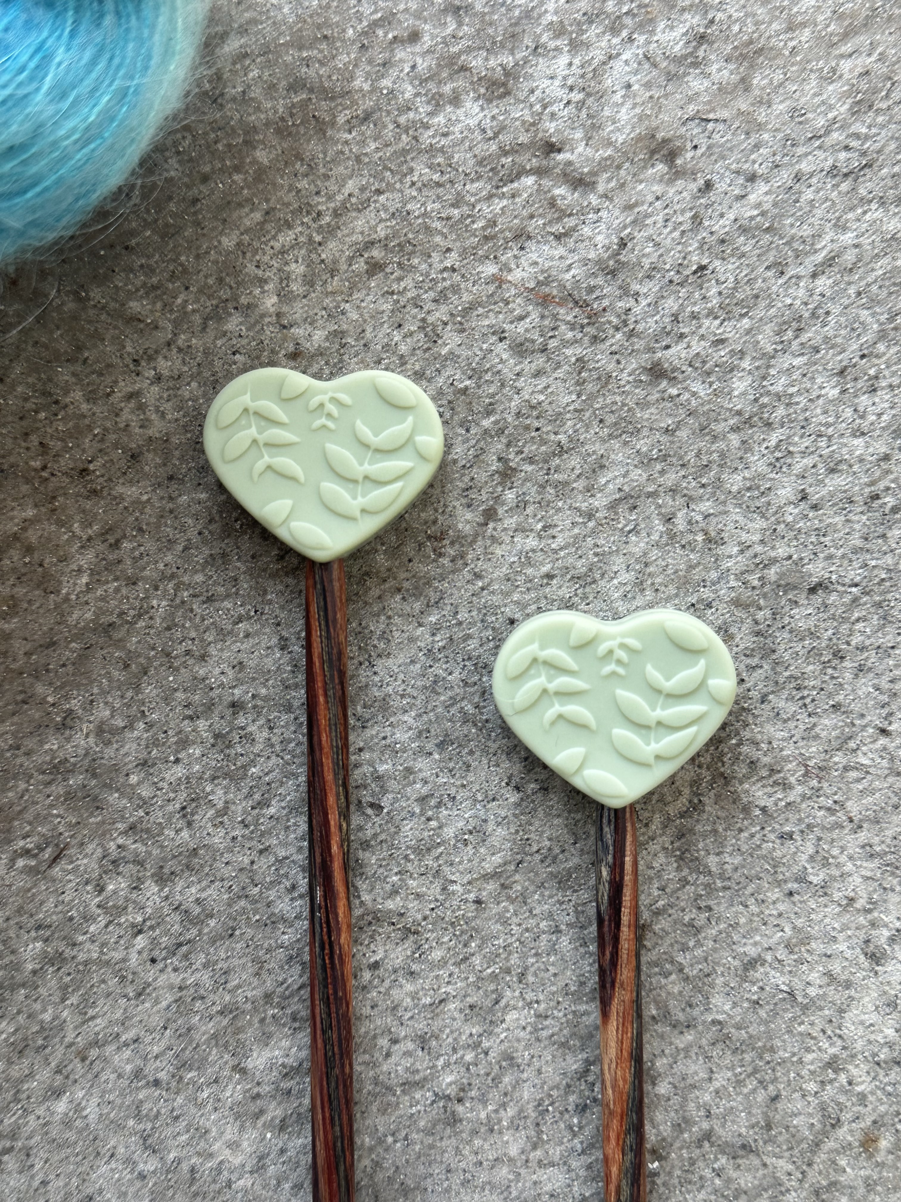 Søte pinnestoppere til strikkepinnene, i silikon.