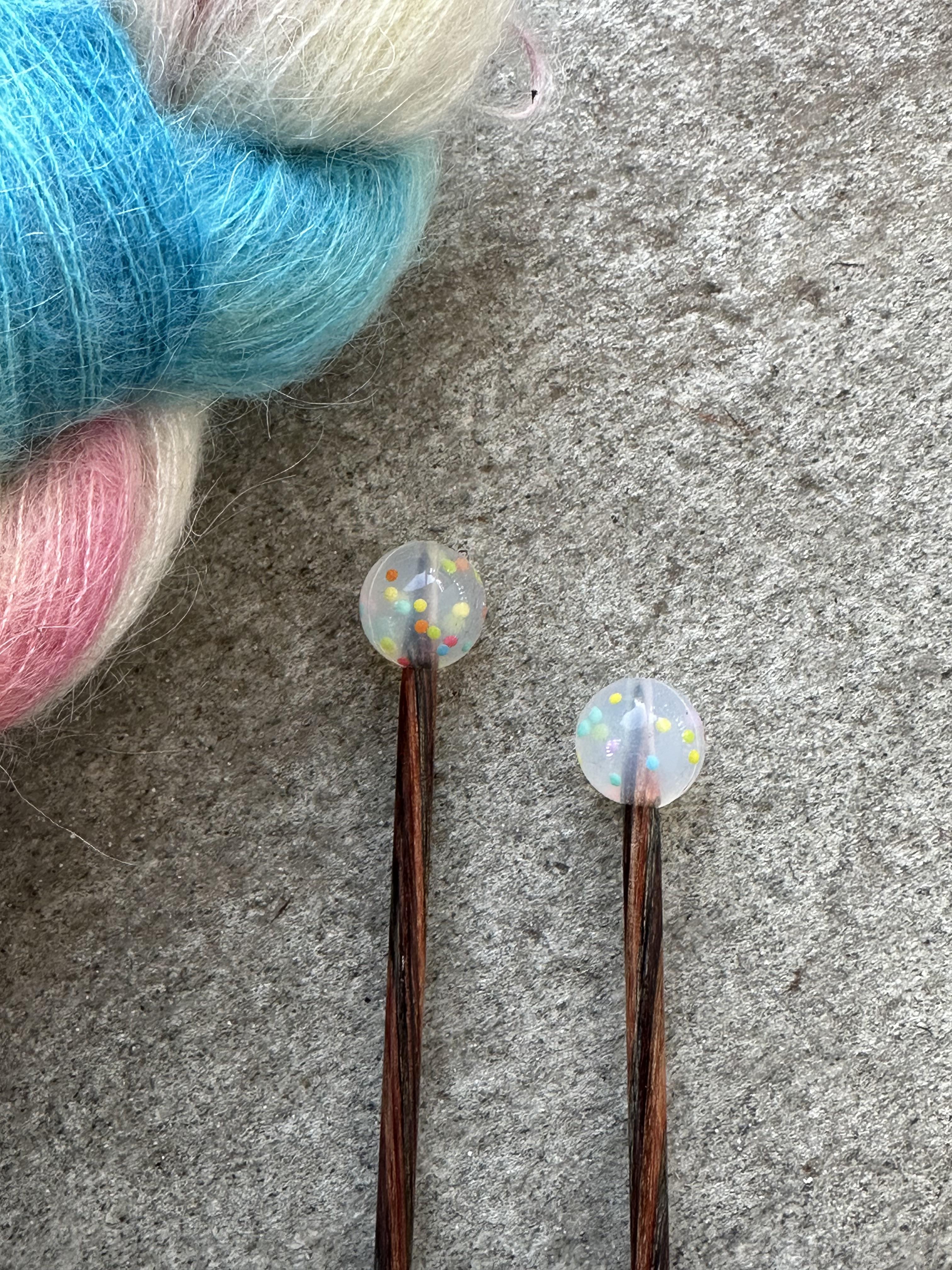 Søte pinnestoppere til strikkepinnene, i silikon.