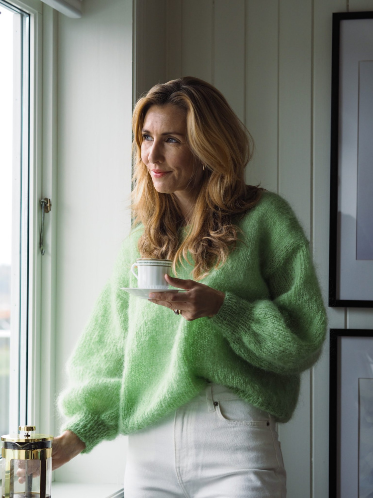Komplett strikkepakke på Tynn zaragenser fra lindtein strikk, den perfekte lette mohair genseren som passer til alle anledninger.