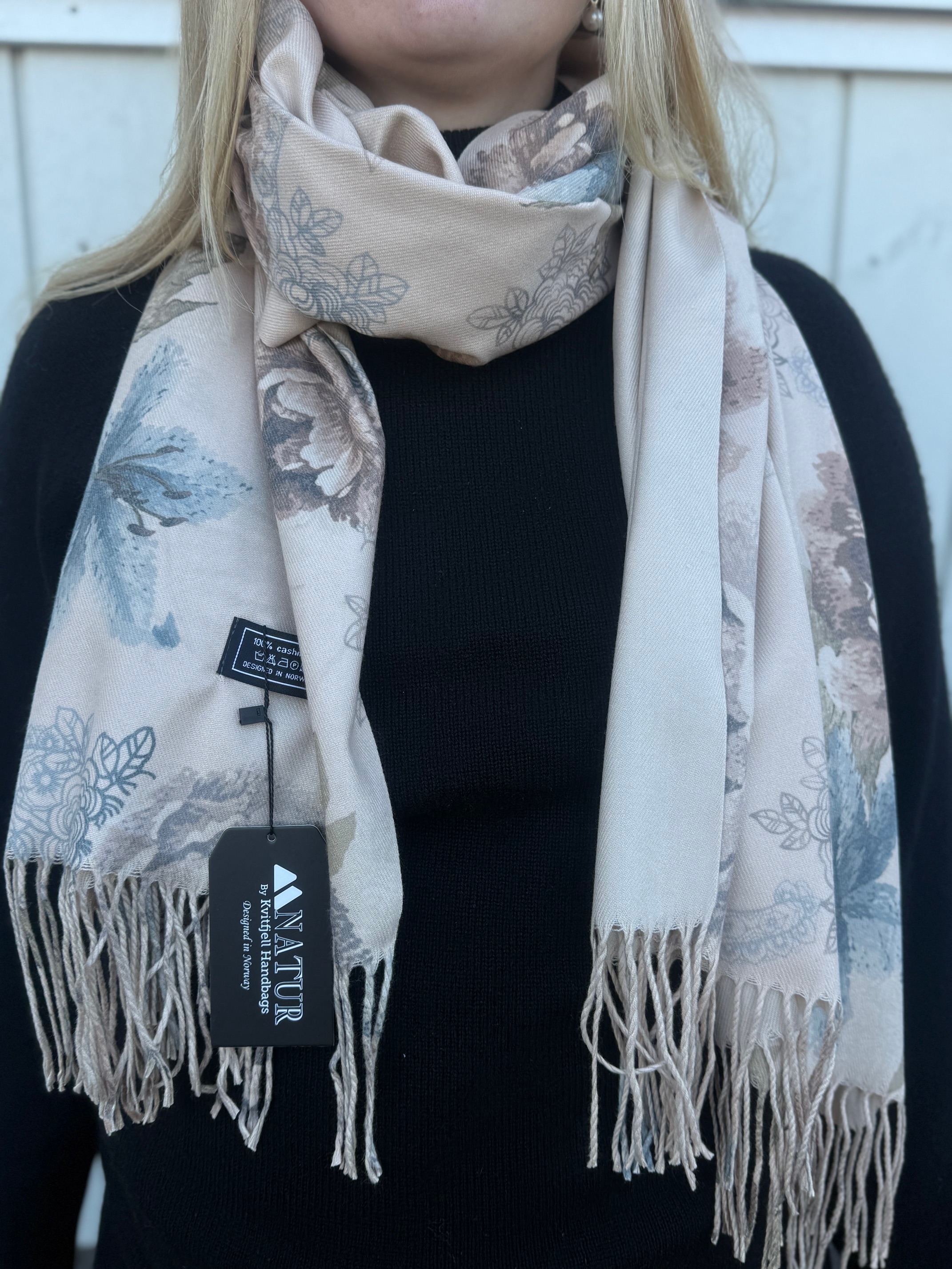 Cashmere skjerf - Blomster Taupe