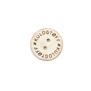 Koselig knapp med tekst som setter prikken over i en på plagget.