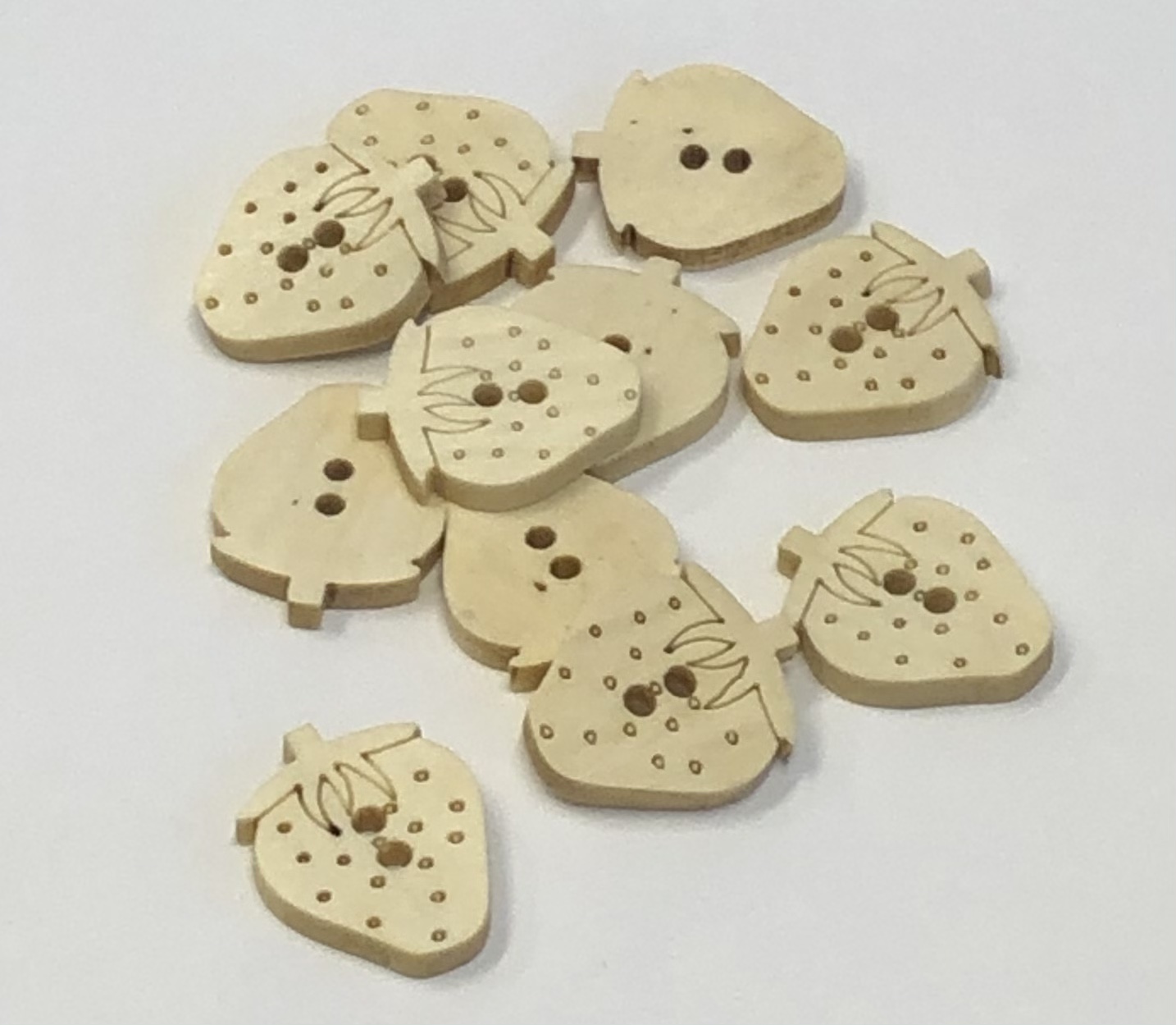 Jordbær knapp i tre, 15 x 20mm.