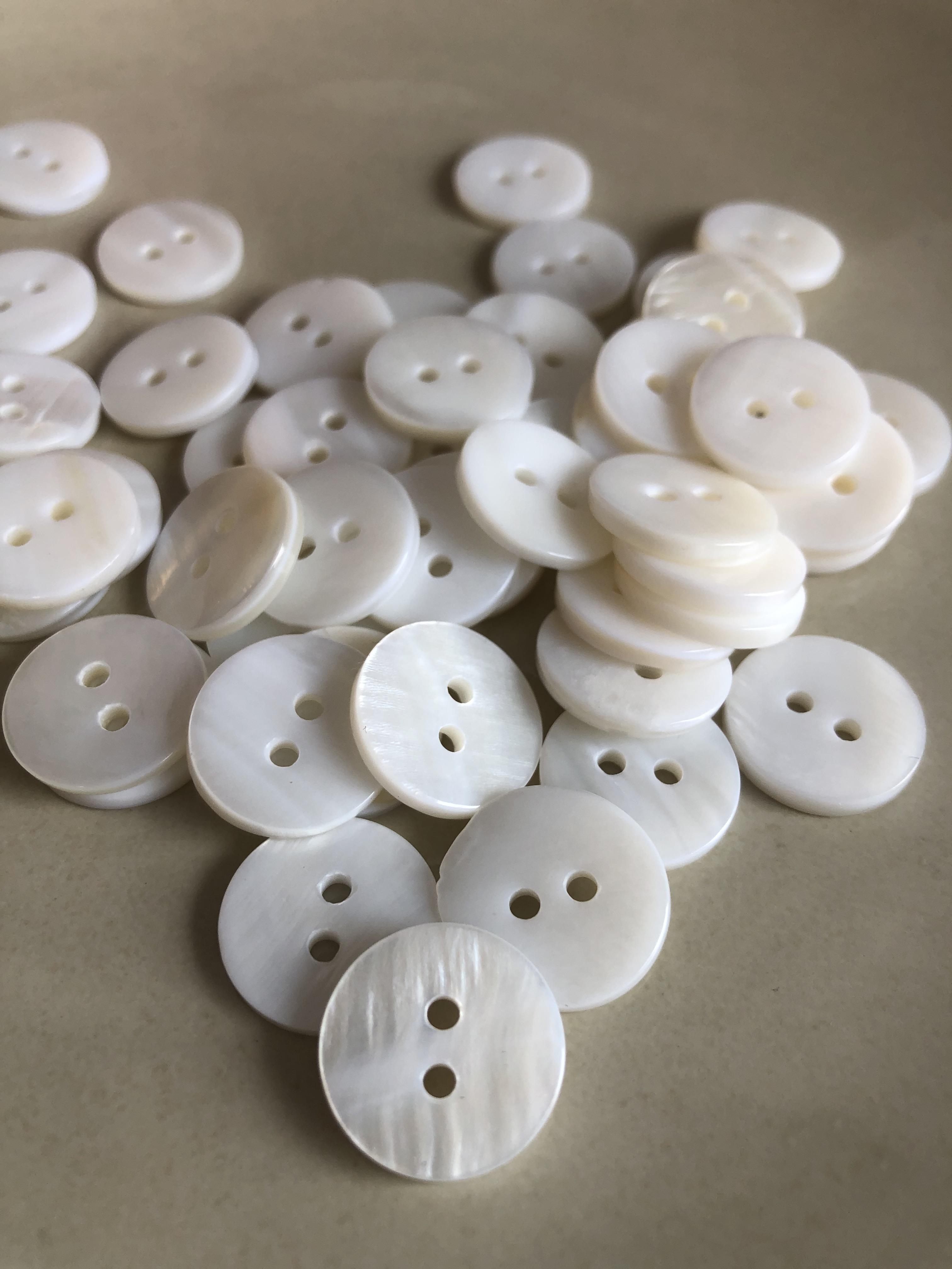 Skjell knapp hvit, 15mm.