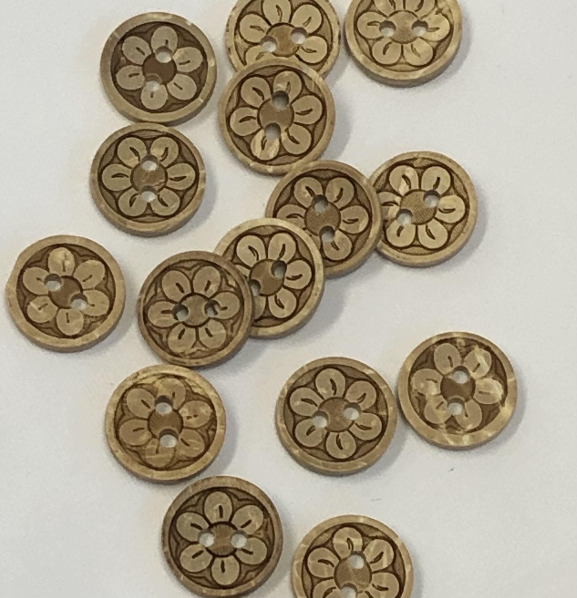 Tre knapp med blomst, 13mm.