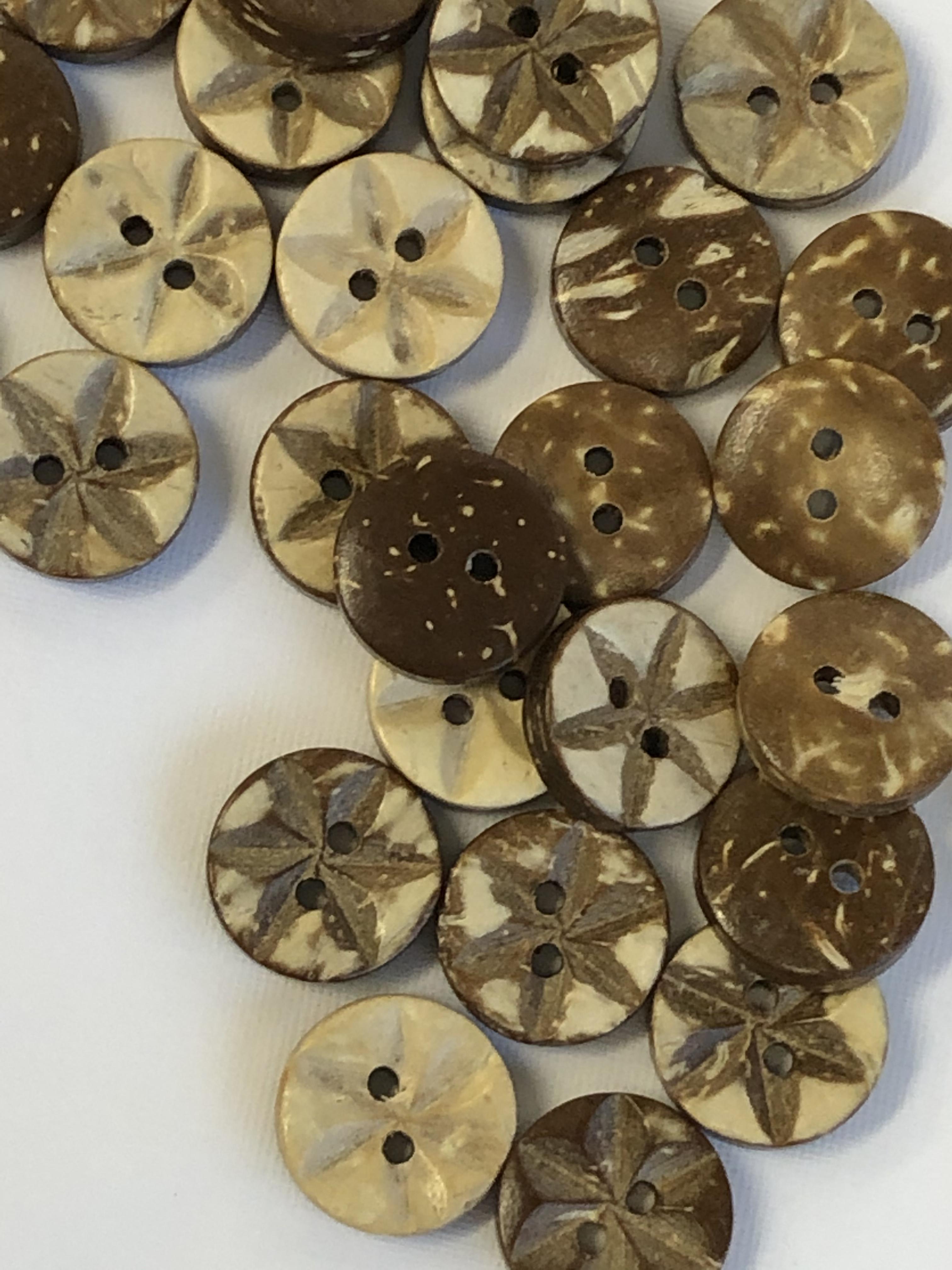Kokos knapp med stjerne motiv, 13mm.