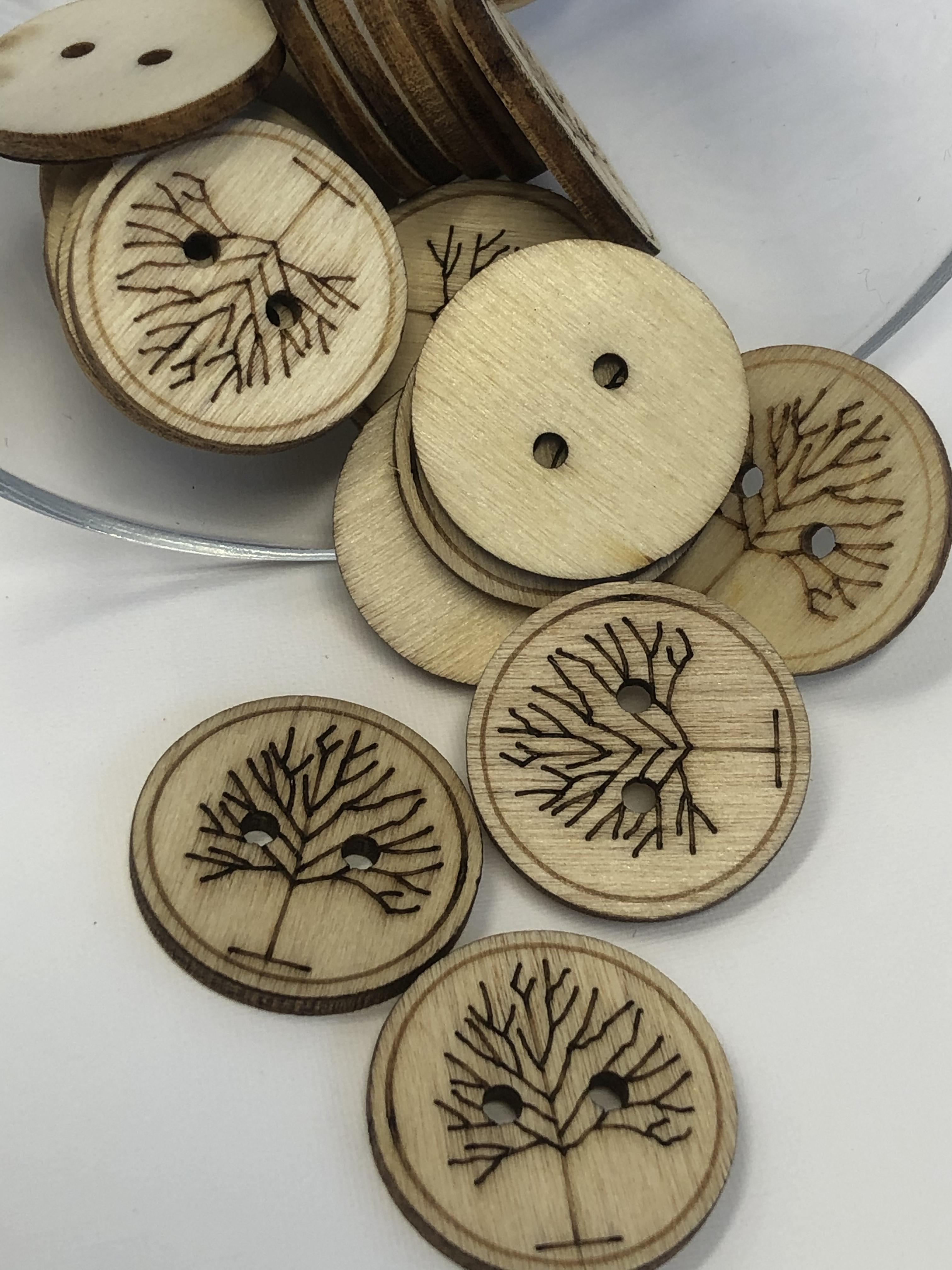 Stor tre knapp med motiv av et tre, 25mm.