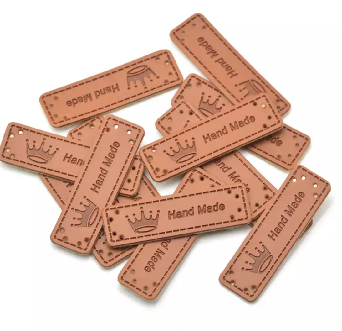 Imitert skinn lapp med krone, 5cm x 1,5cm.