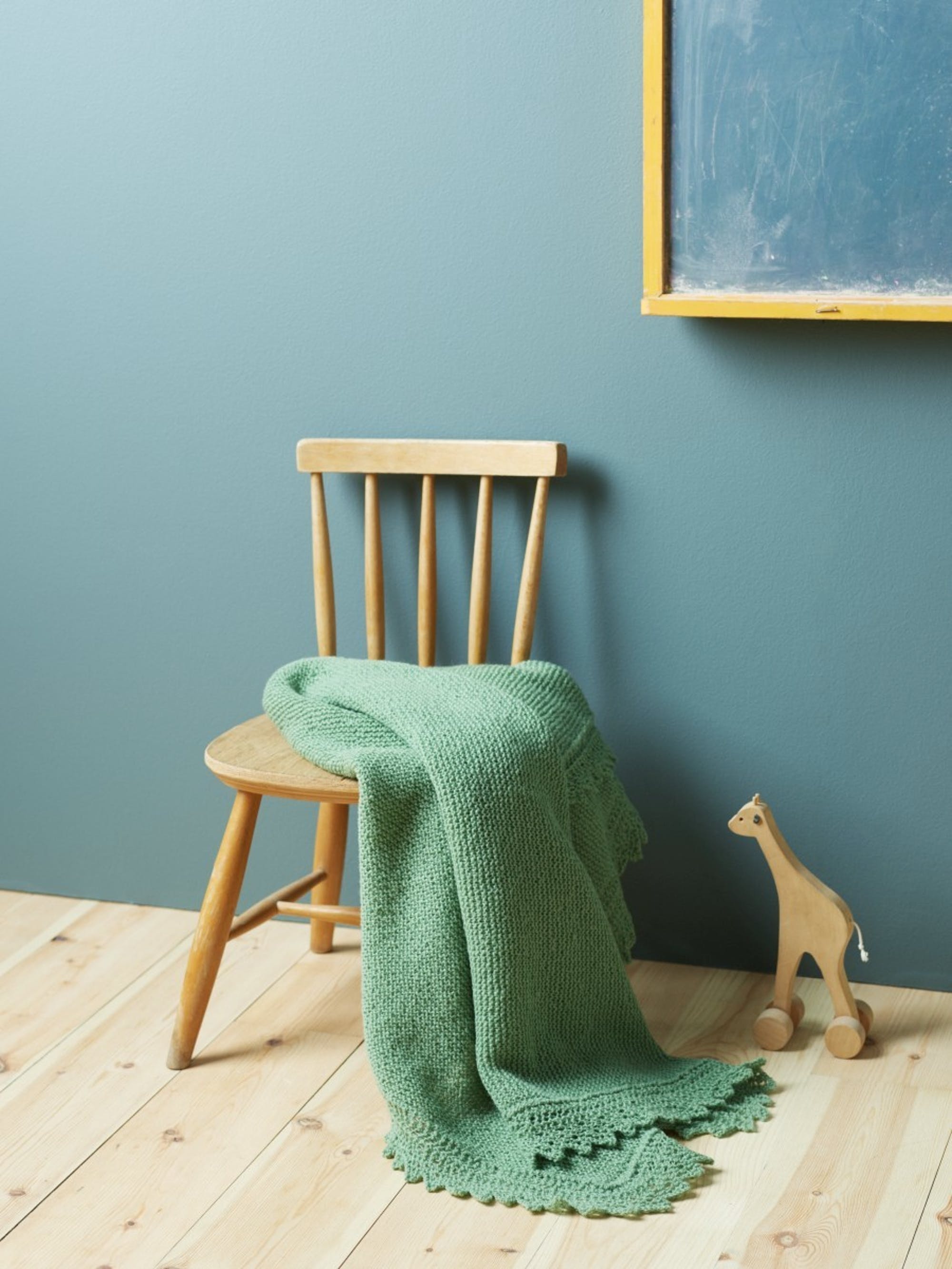 Nydelig babyteppe strikket i rauma lamullgarn ( 300g jadegrønn) , strikket på pinne 3,5mm.