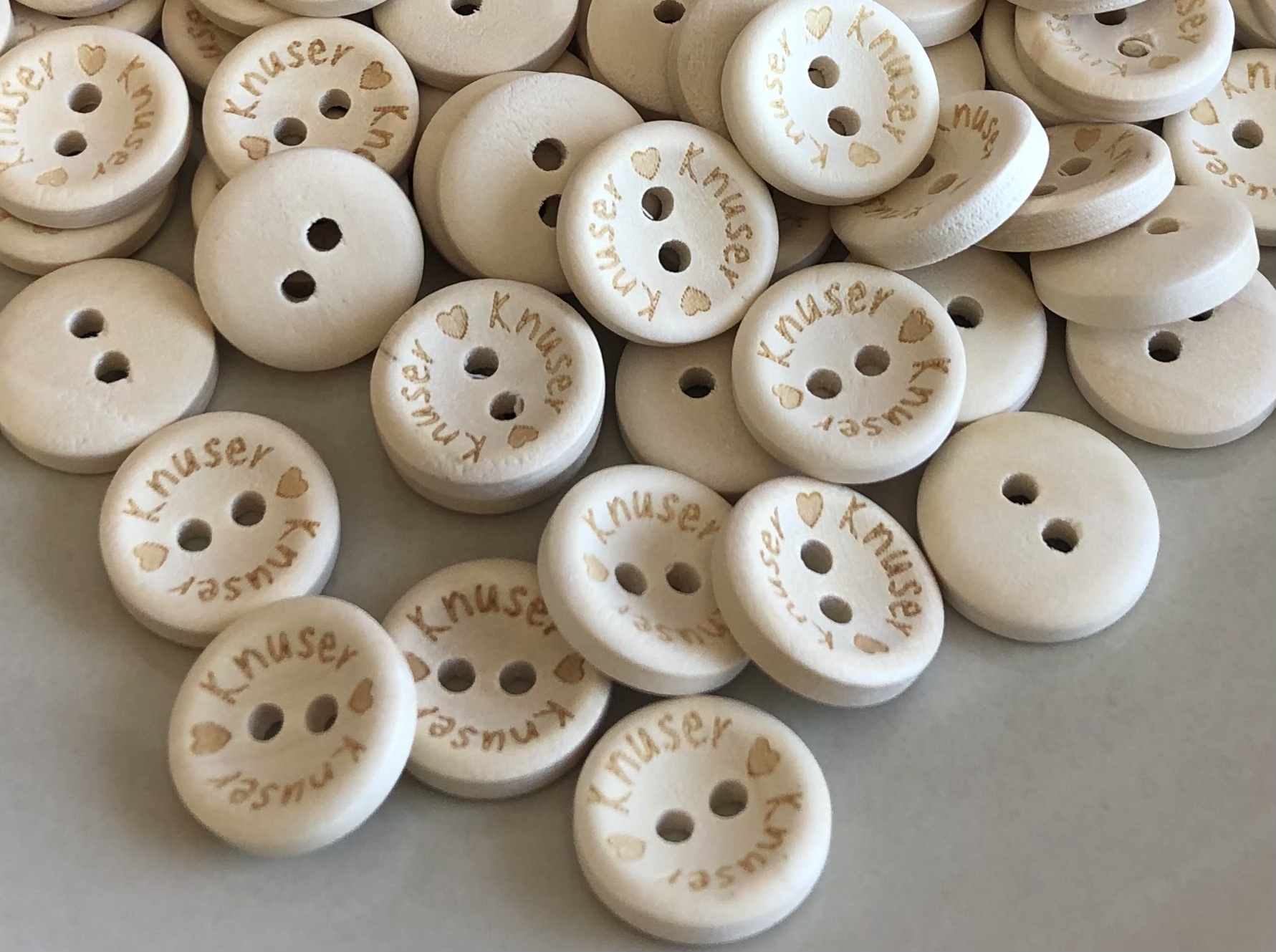 Tre knapp med et hjerte og tekst knuser, 15mm.