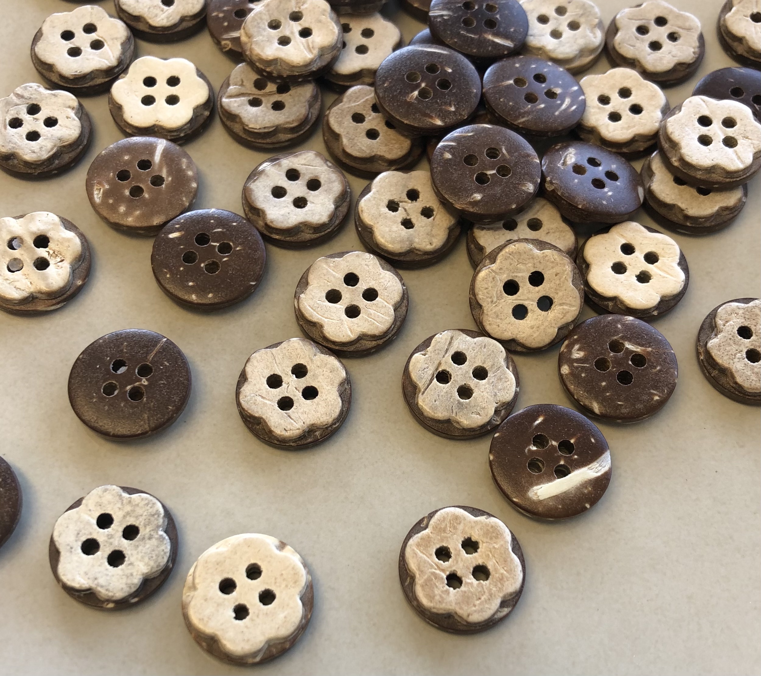 Kokos knapp med blomst, 13mm.