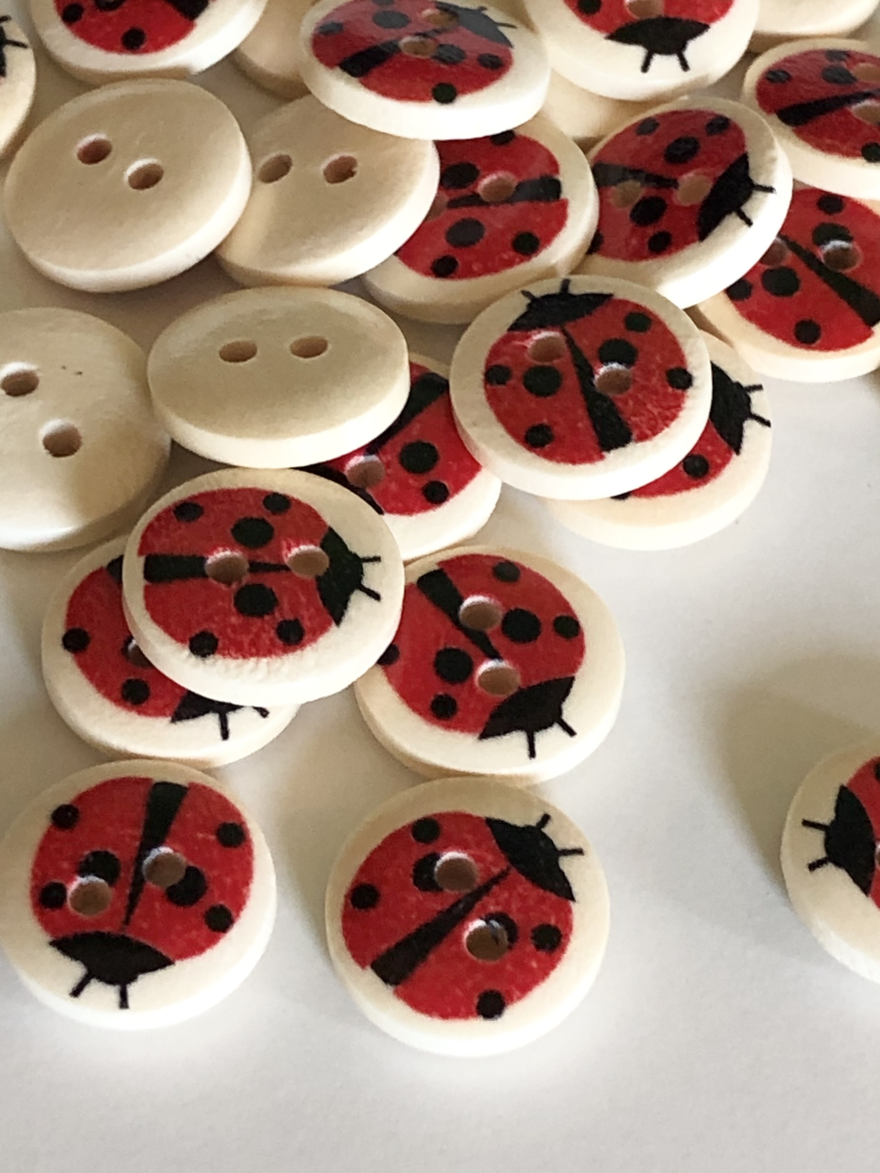 Tre knapp med marihøne , 15mm.