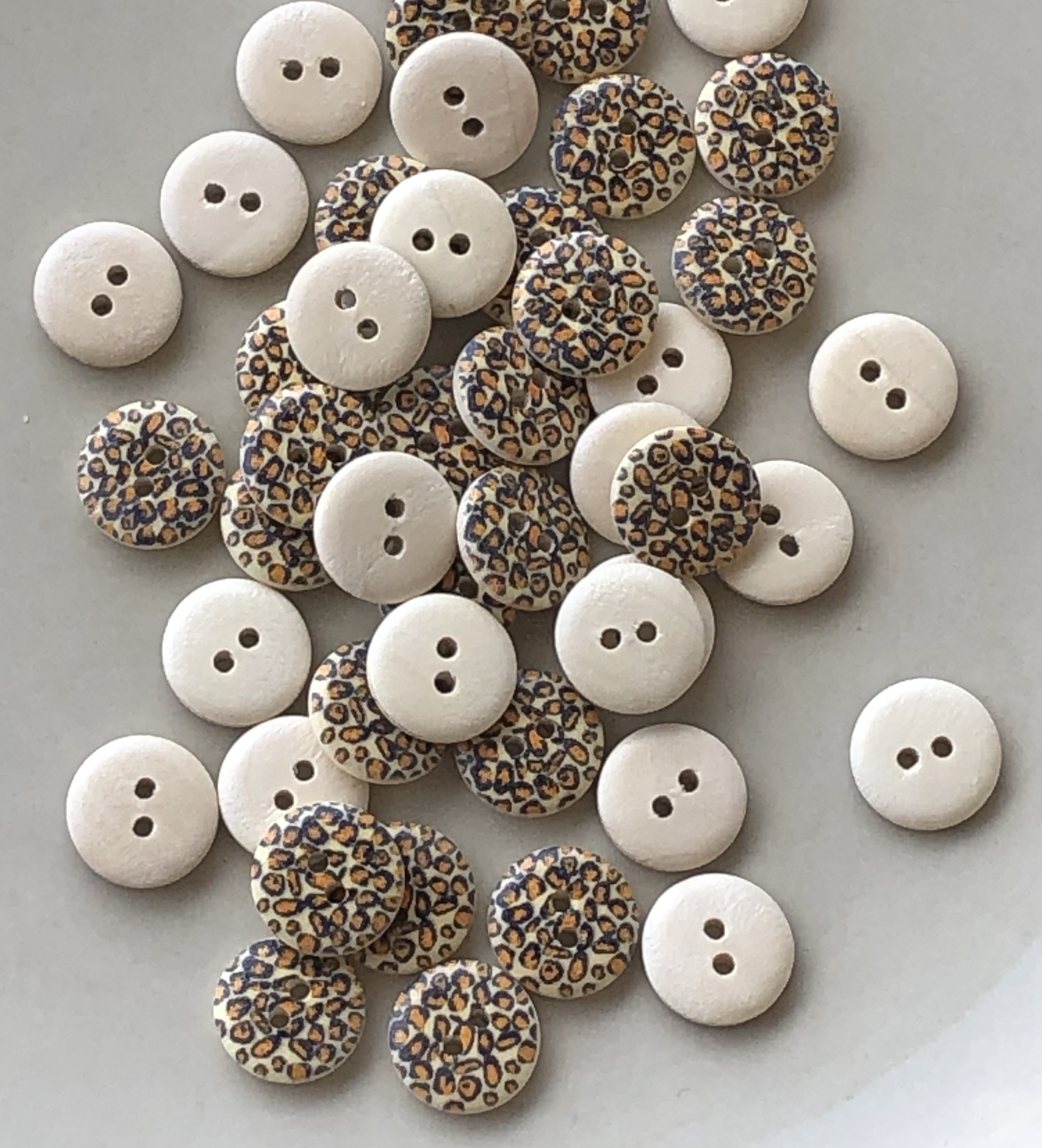 Tre knapp med leopard mønster, 15mm.