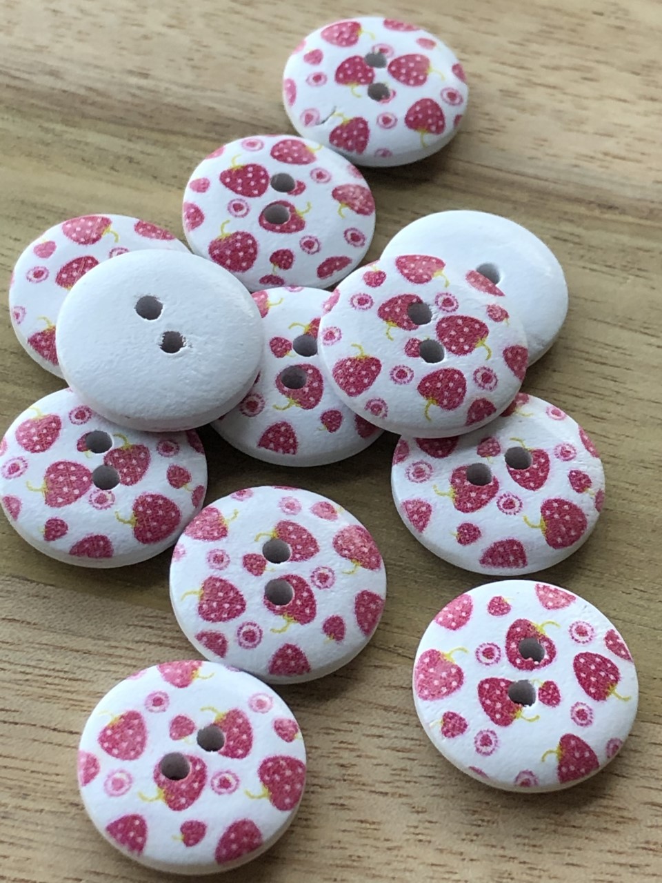 Tre knapp med jordbær , 18mm.