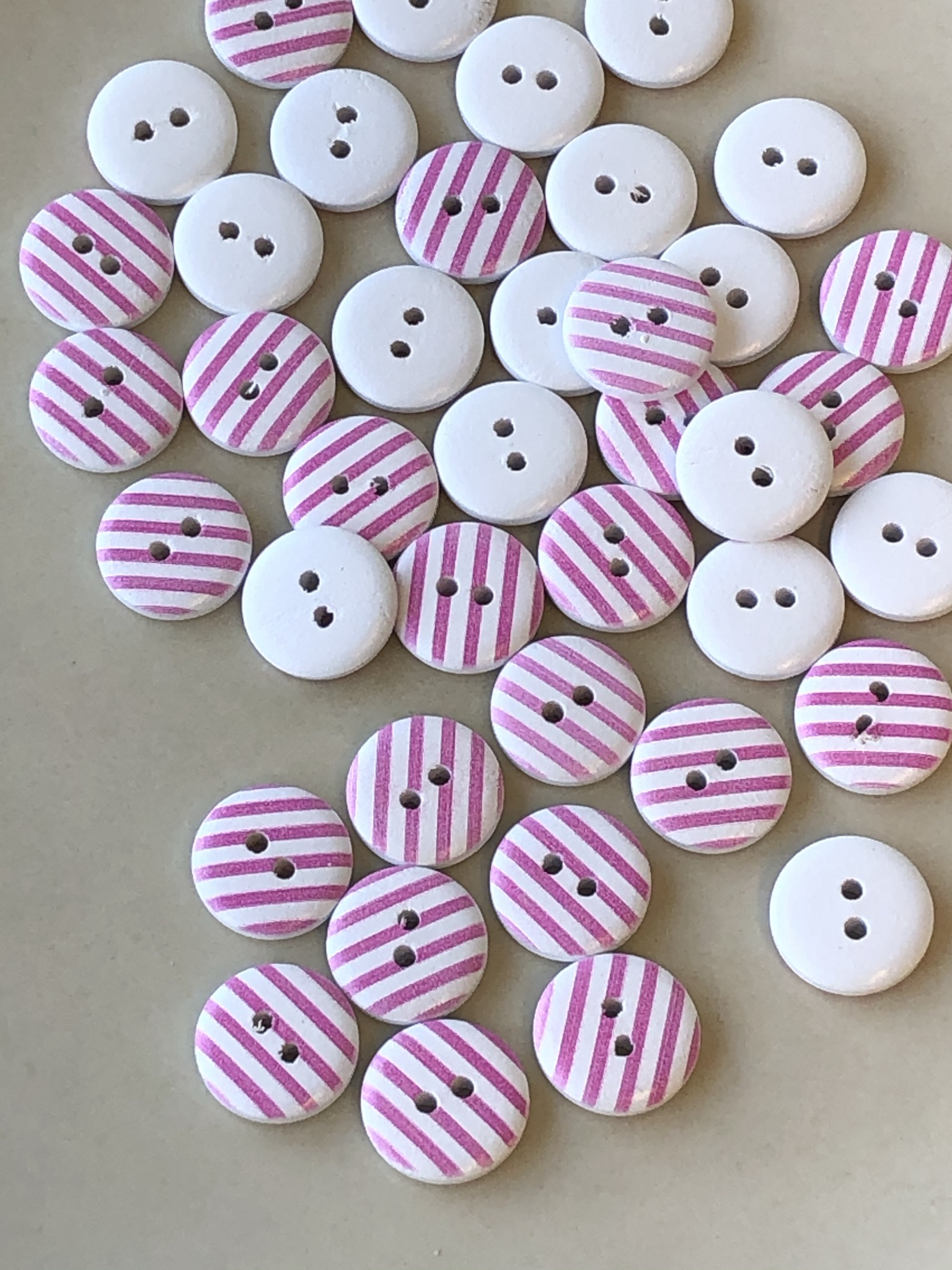 Tre knapp med rosa striper, 15mm.