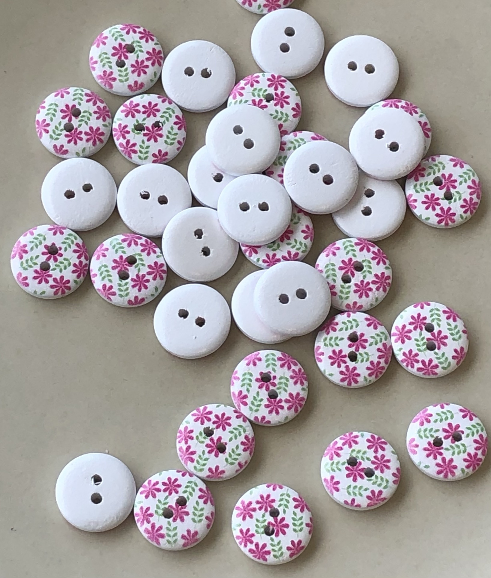 Hvit med rosa/grønne blomster - 15mm