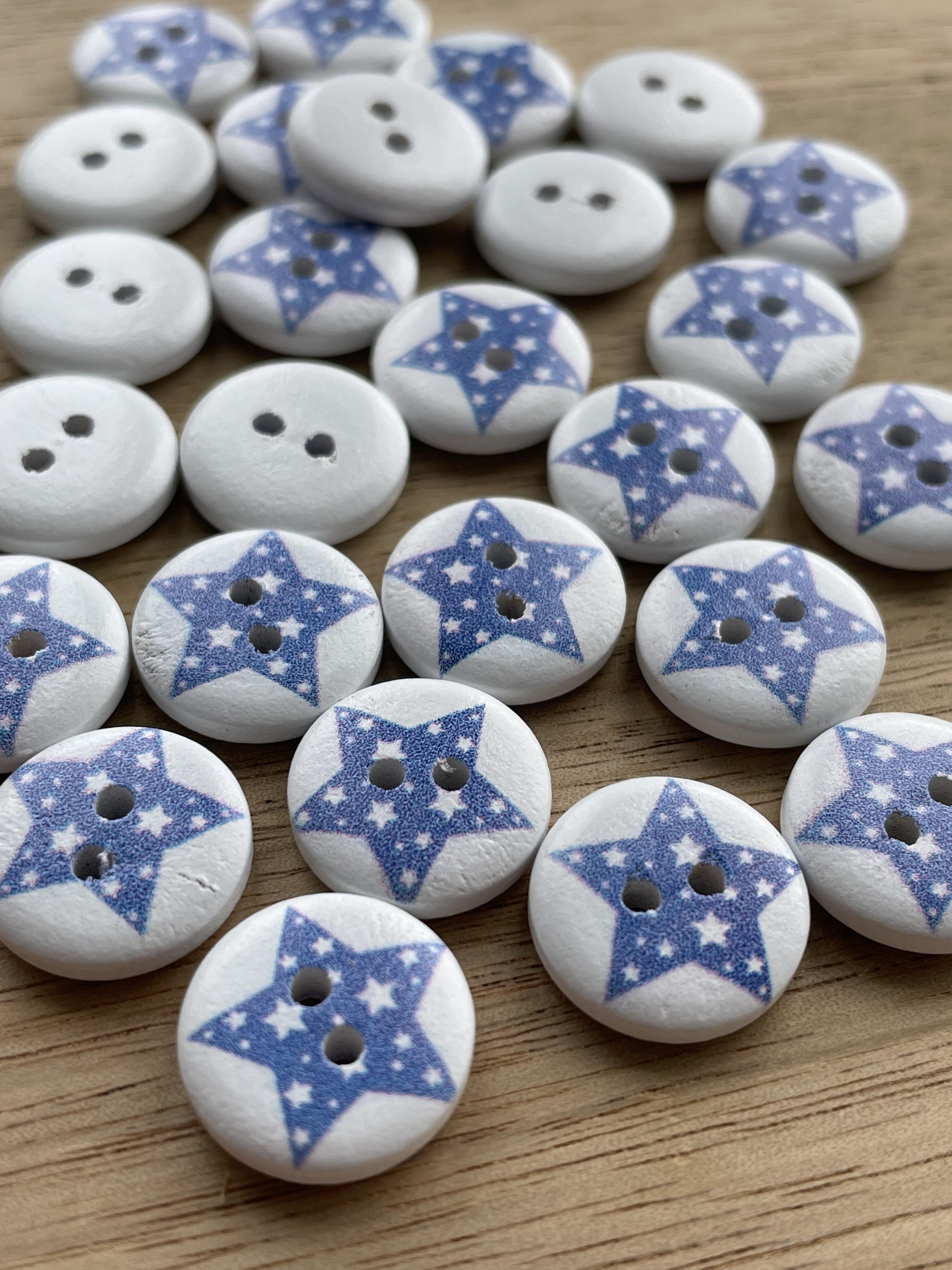 Tre knapp med blå stjerne , 15mm.