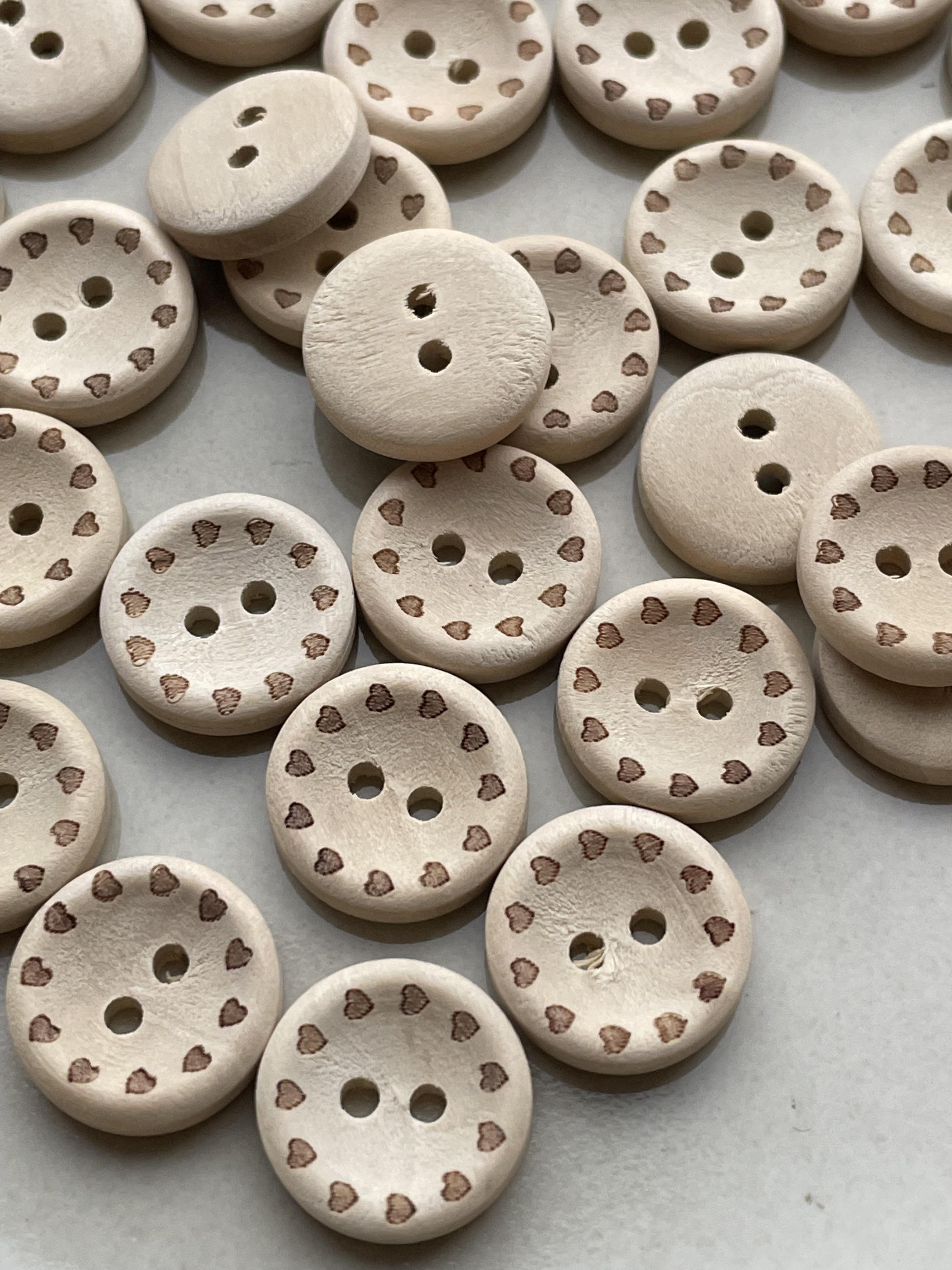 Garnpikens eget desginet tre knapper, med hjerter - 15mm.