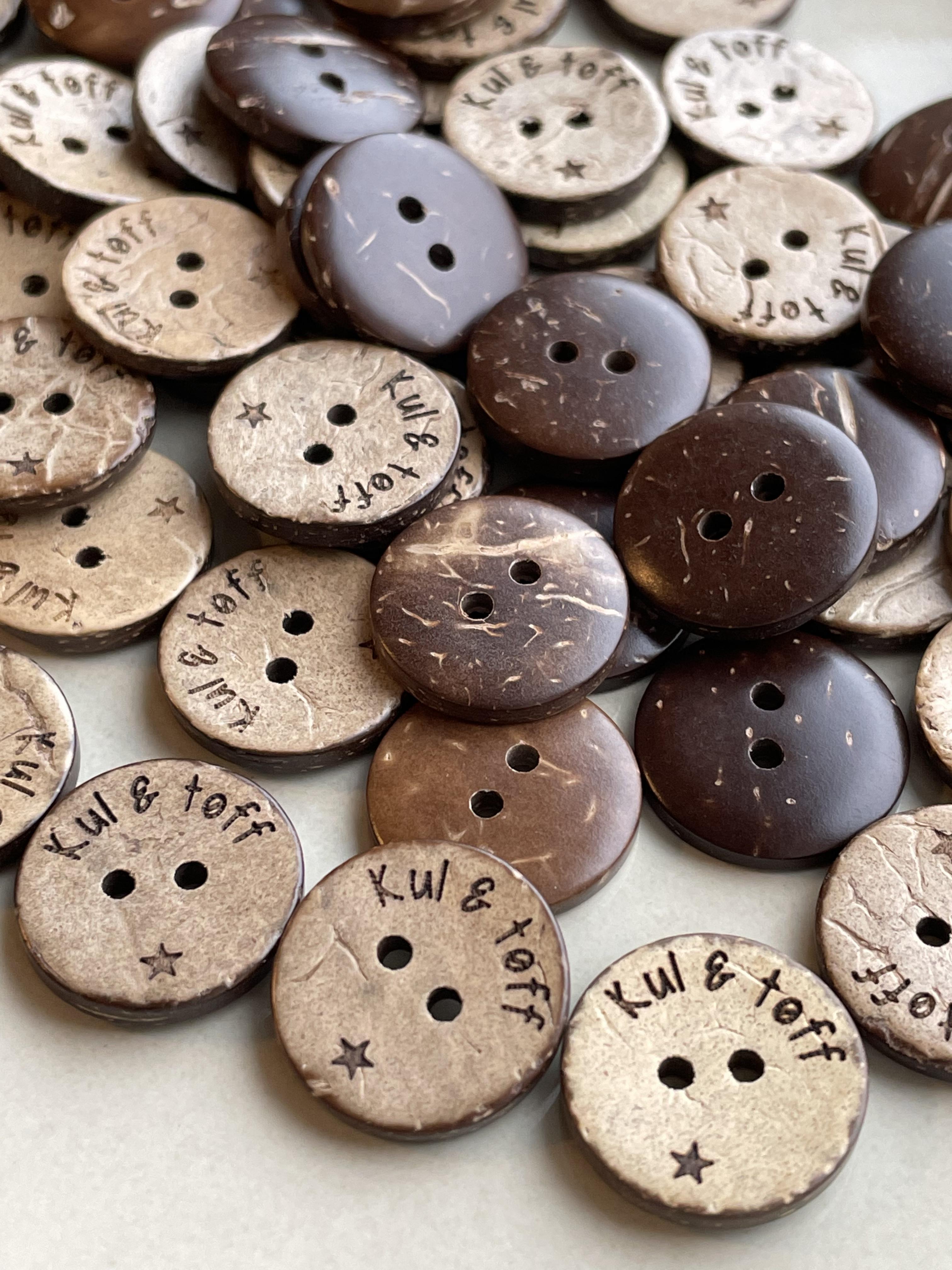 Garnpiken sine eget designet kokosknapper med tekst, « Kul & tøff» - 18mm.