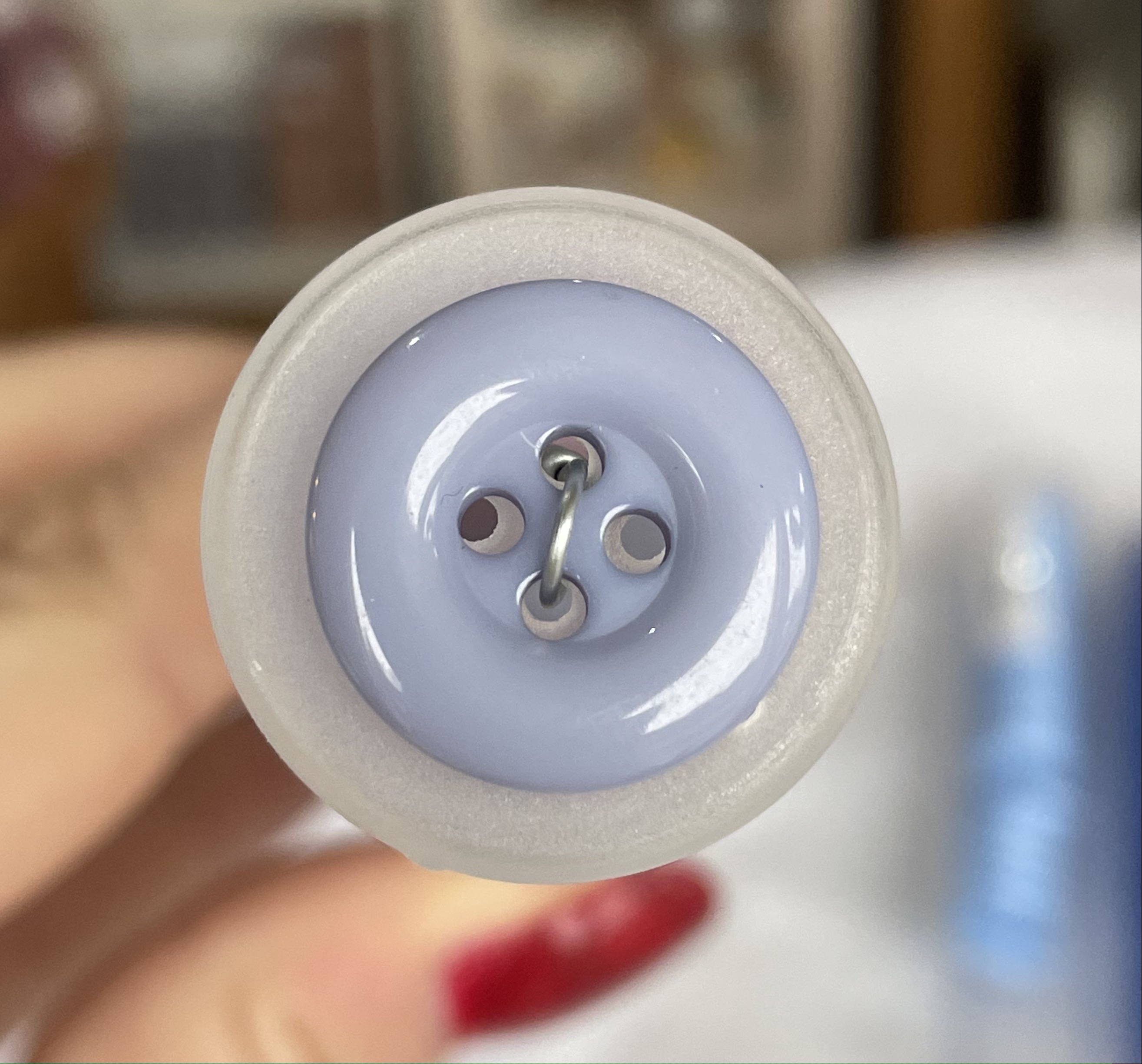 Grå/blå knapp , 18mm.