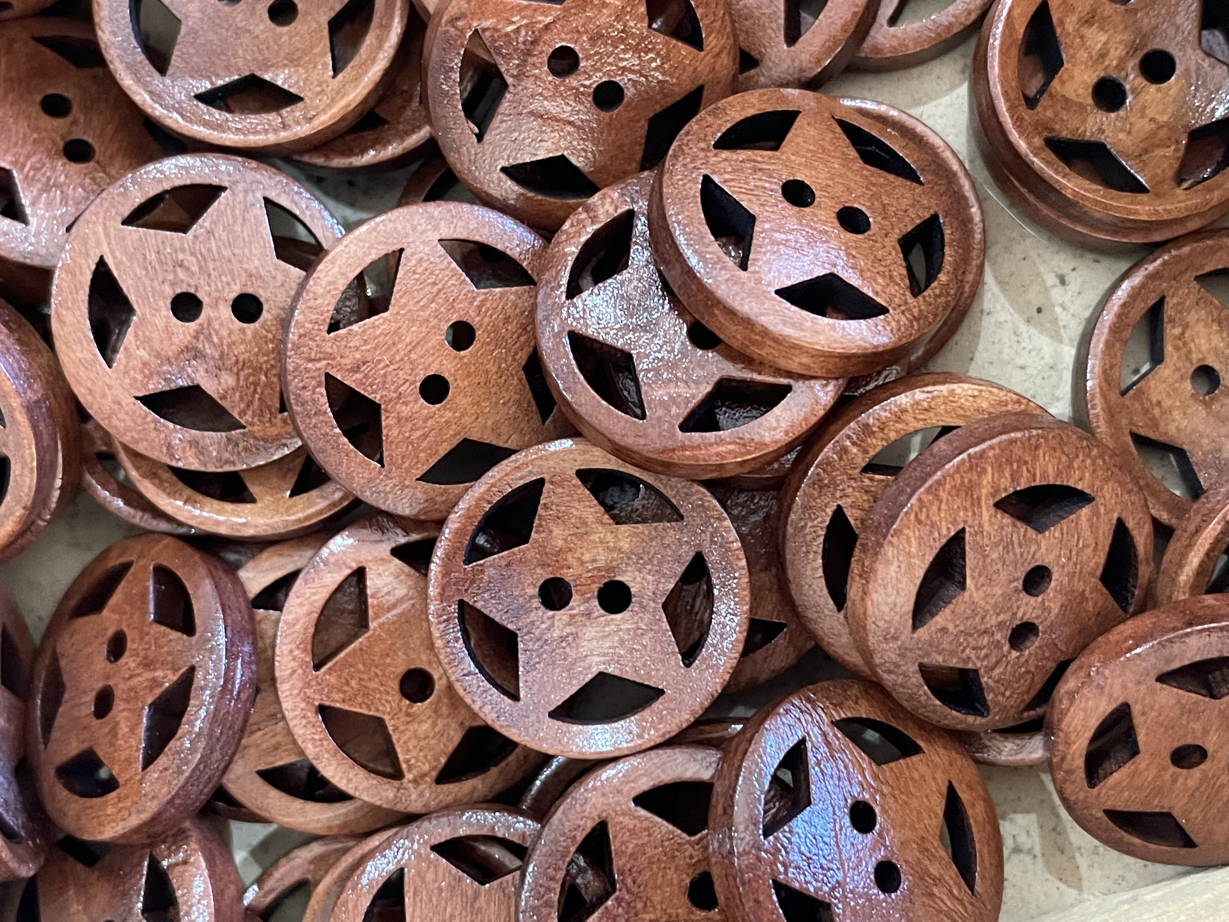 Tre knapp i brunt, med stjerne motiv. 20mm.