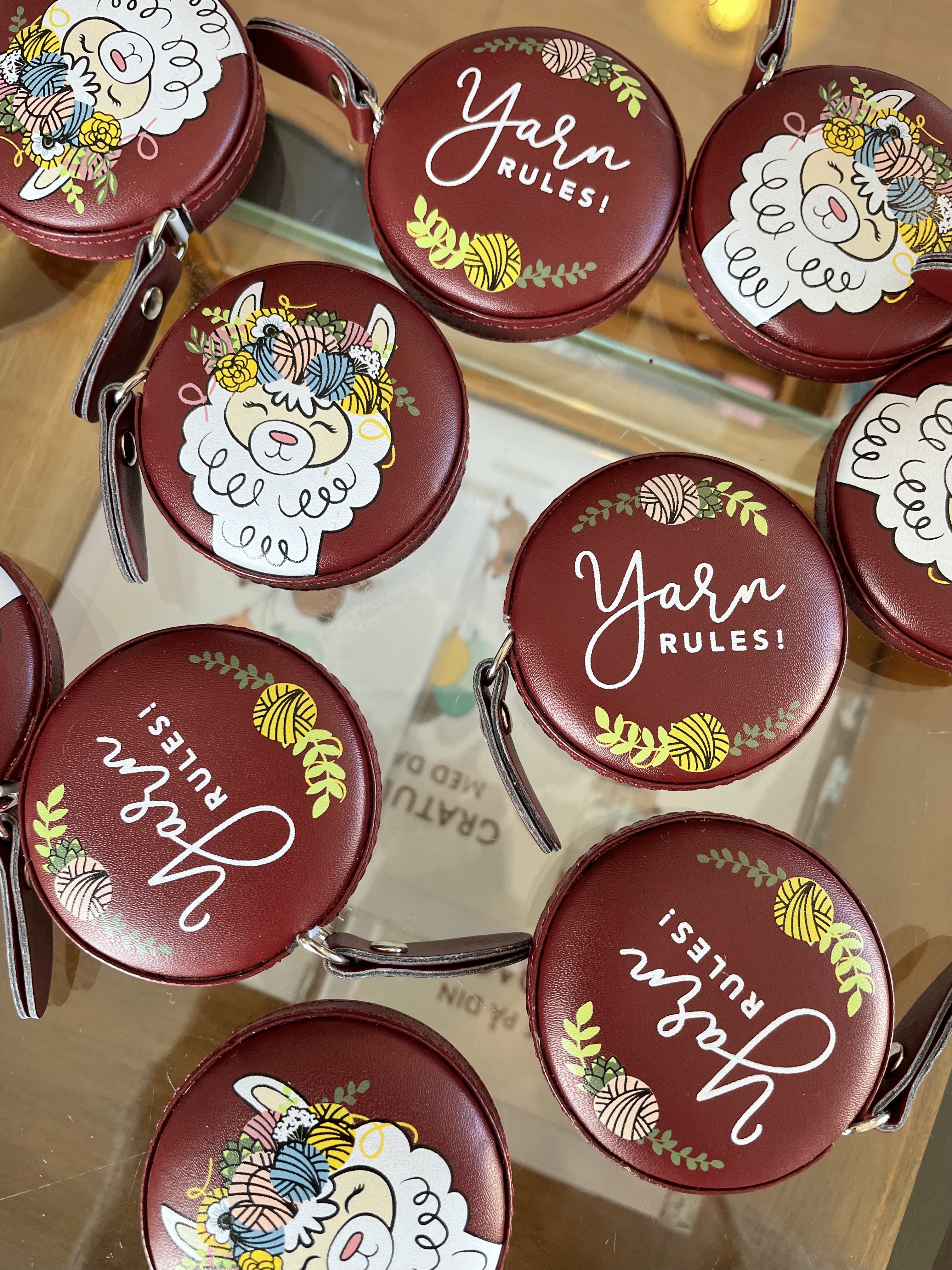 Målebånd for garn elskere , med lama og tekst "Yarn rules".