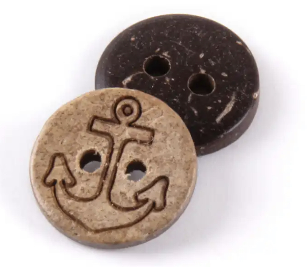 Kokos knapp med anker , 12,5mm.
