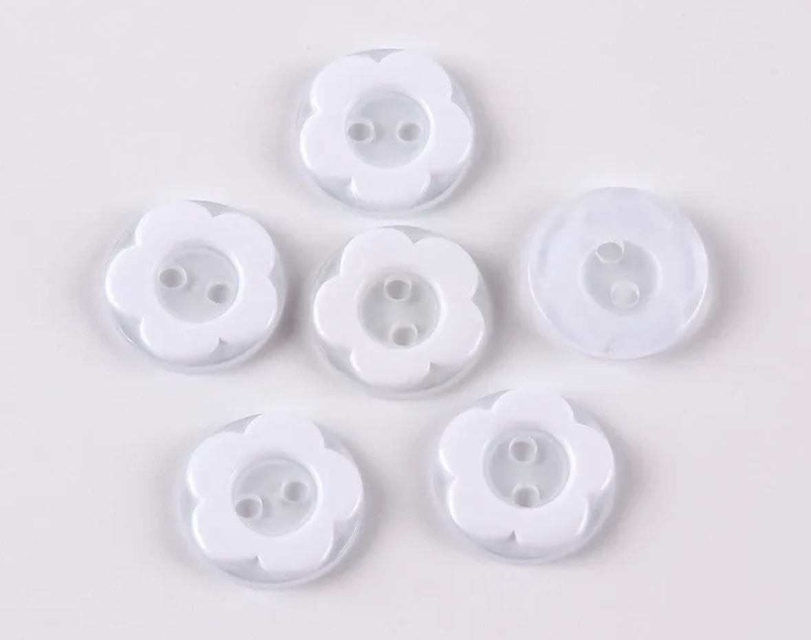 Knapp med blomst i hvit , 13mm.
