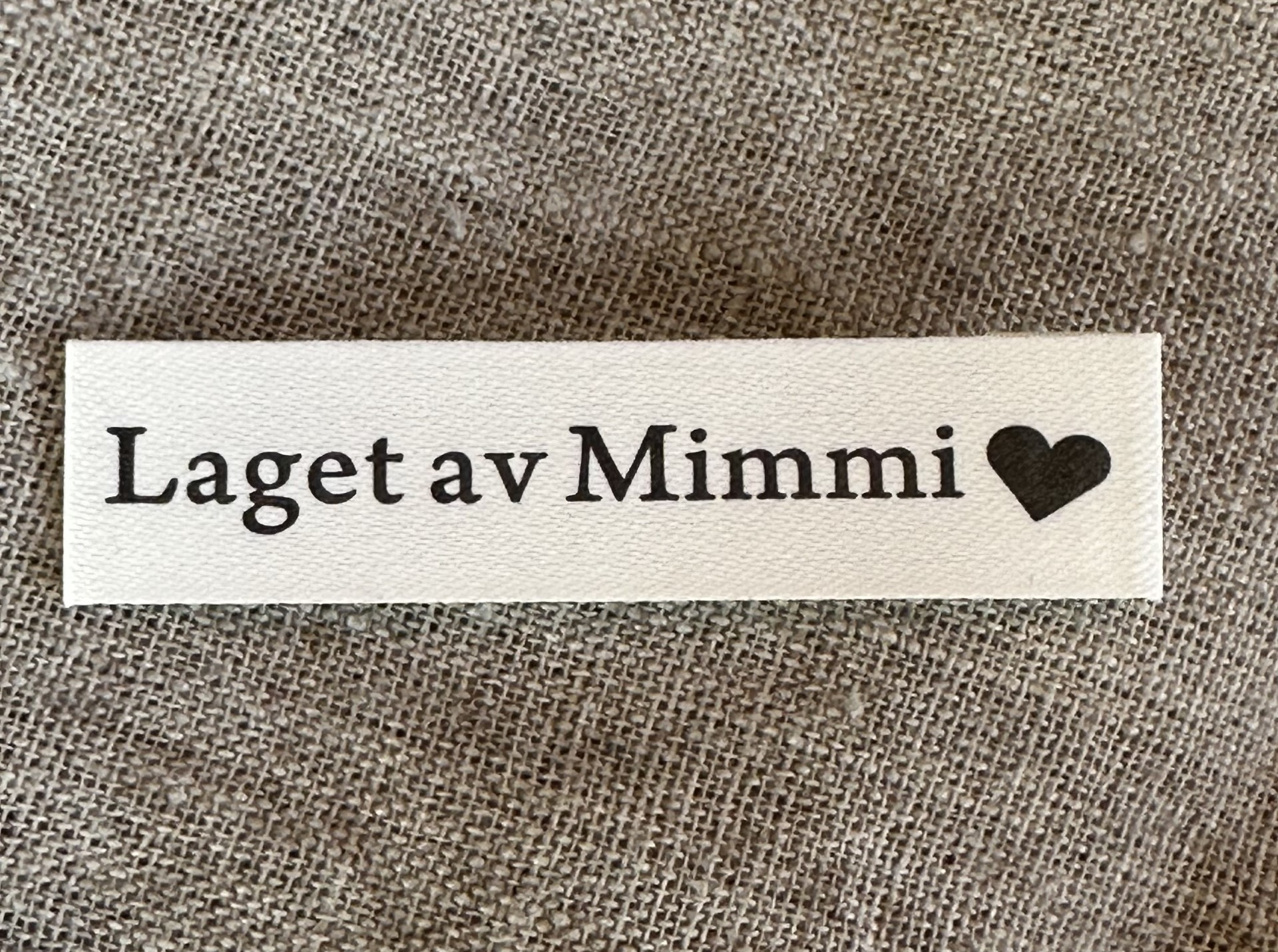 Merkelapp med tekst "Laget av Mimmi"