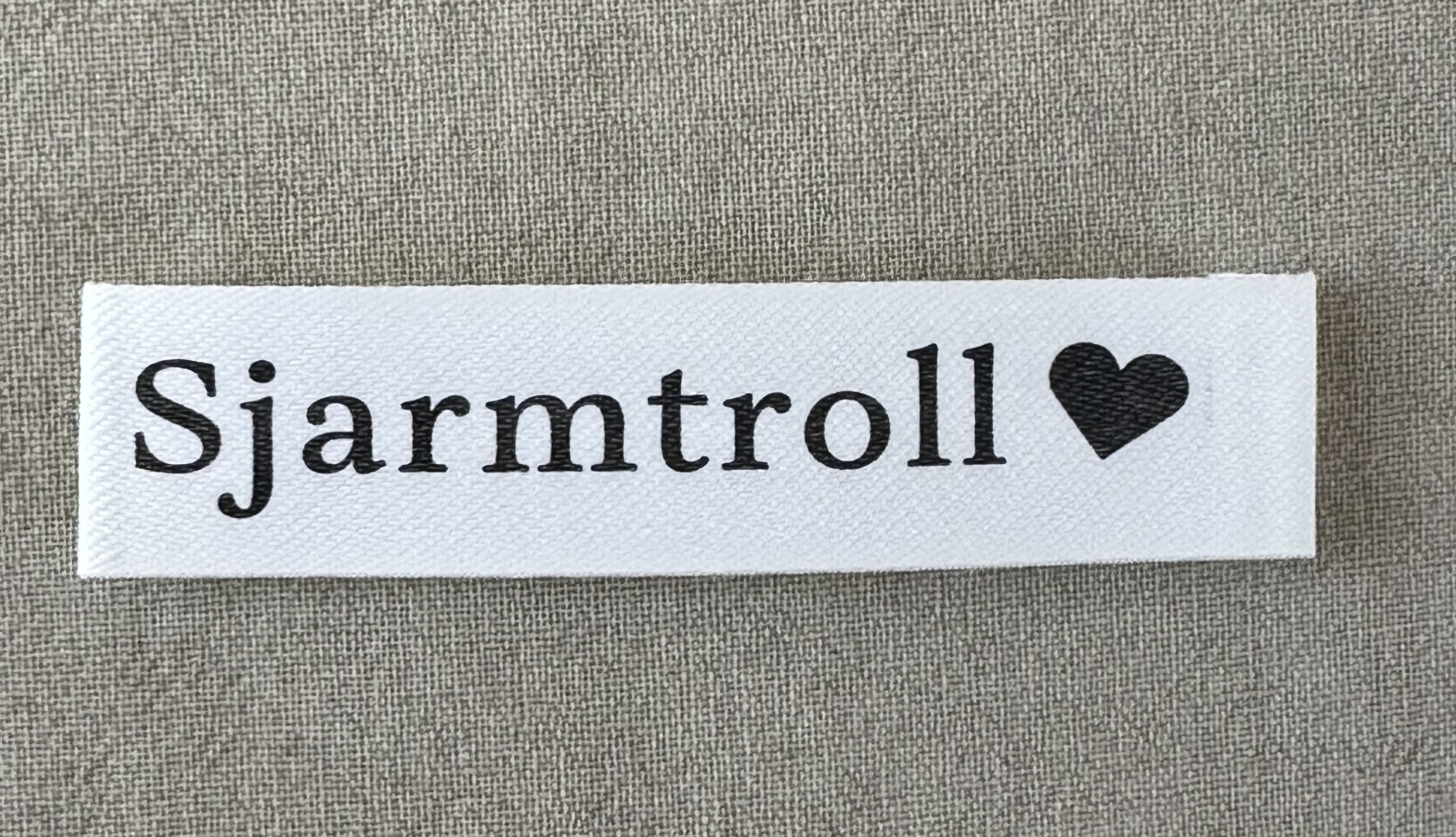 Merkelapp med tekst «Sjarmtroll»